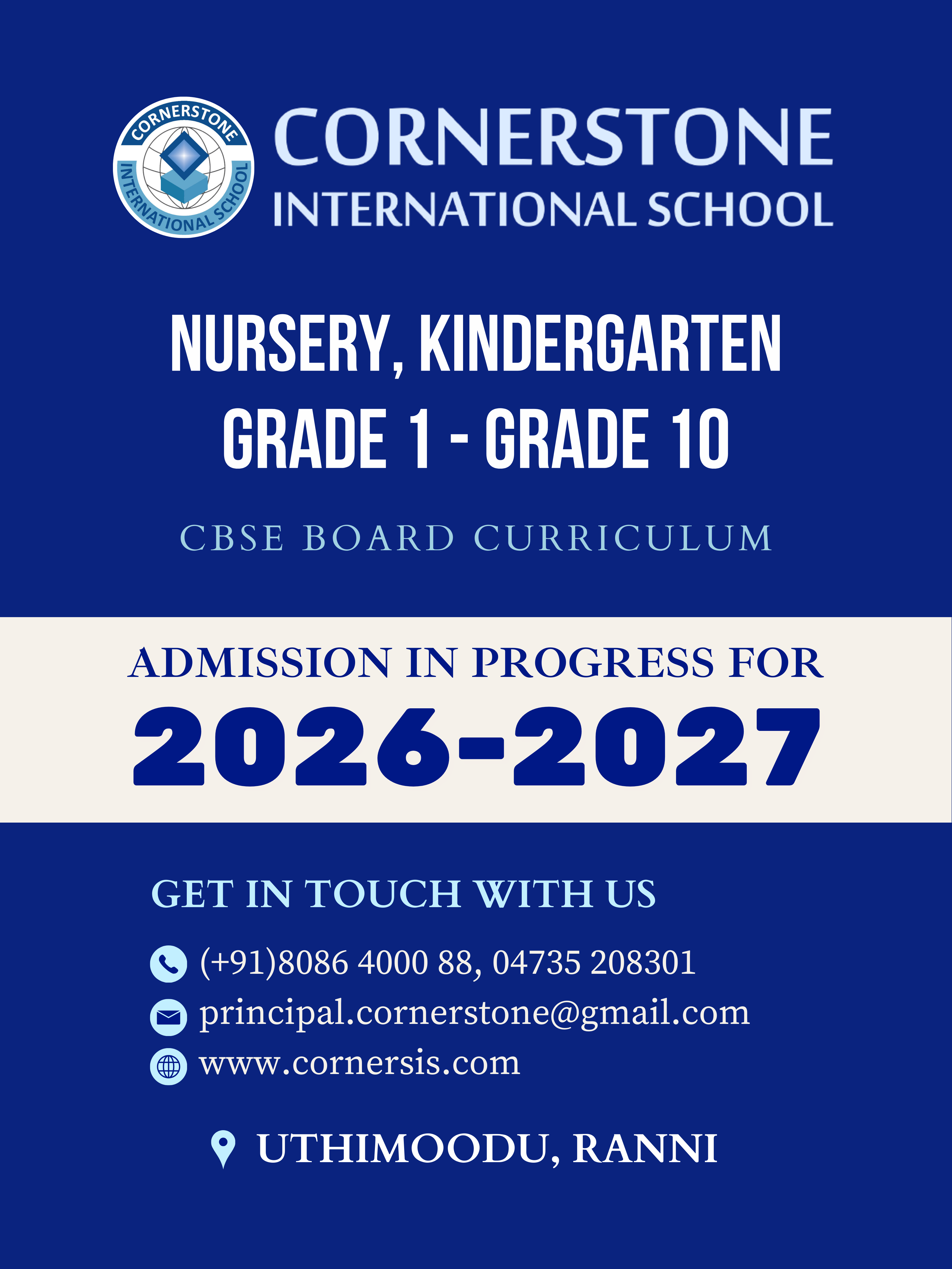 Admissions Open for Nursery to Grade 10Cornerstone operates across three locations as Cornerstone International School providing CBSE Education and Kindergarten programs through Cornerstone Montessori & Cornerstone Kidscentre.